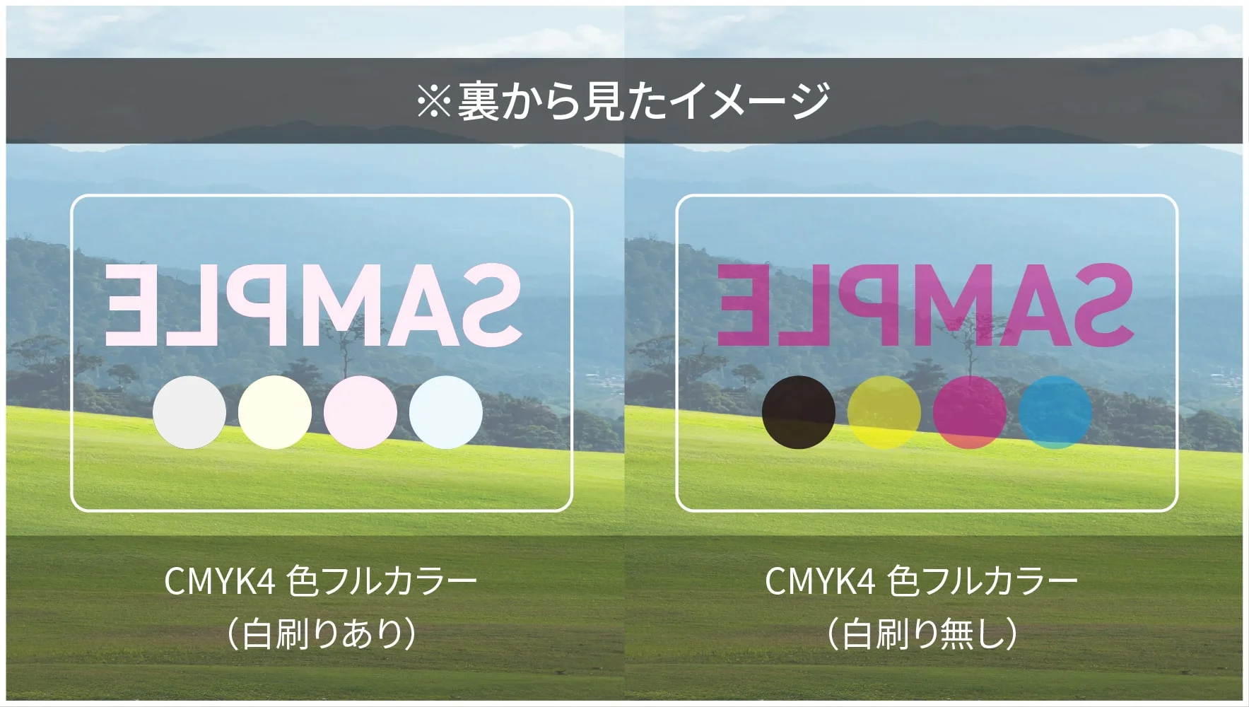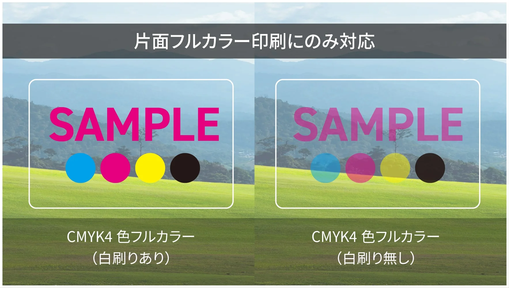 片面フルカラー (表0色/裏4色フルカラー+白刷り) | |