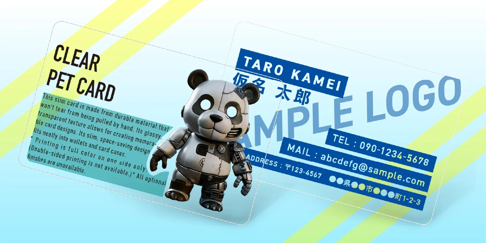 透明PETカードの場合は白刷りも可能で、片面印刷にのみ対応しております。